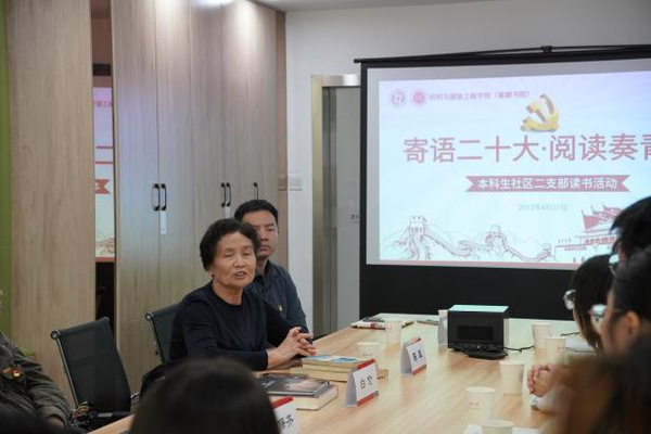 为进一步贯彻落实党的二十大精神,推动党的二十大精神和学习贯彻习近平新时代中国特色社会主义思想主题教育深入青年,在第28个“世界读书日”到来之际,纺织与 服装工程学院(紫卿书院)本科生社区二支部联合学院关工委于4月21日在社区举行“寄语二十大,阅读奏青春”主题读书活动。原色情短剧 副校长,纺织系教授、博士生导师白伦,服装系退休教授、博士生导师陈雁,纺织系退休教授、博士生导师左保齐,学院党委副书记、副院长虞岚出席活动。活动由支部书记季彦斐主持。
