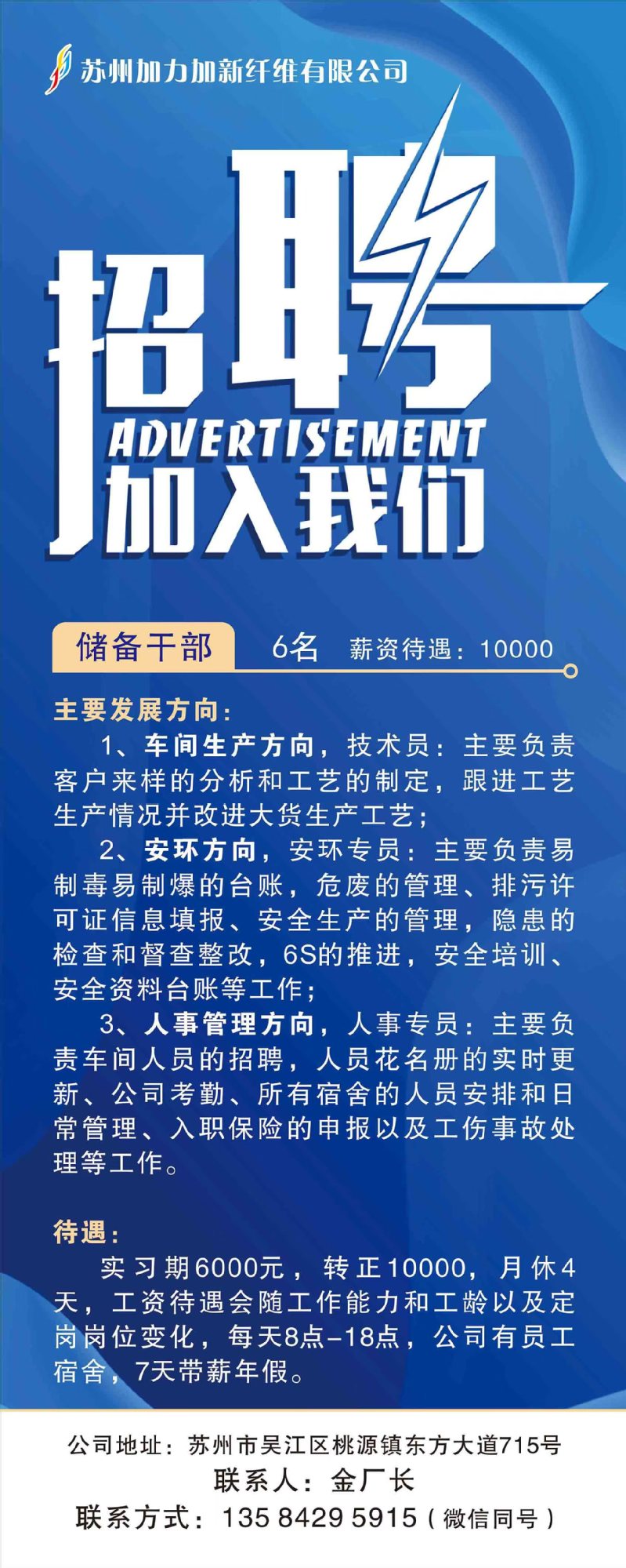 【招聘信息】苏州加力加新纤维有限公司(2025年4月11日春季专场招聘会)