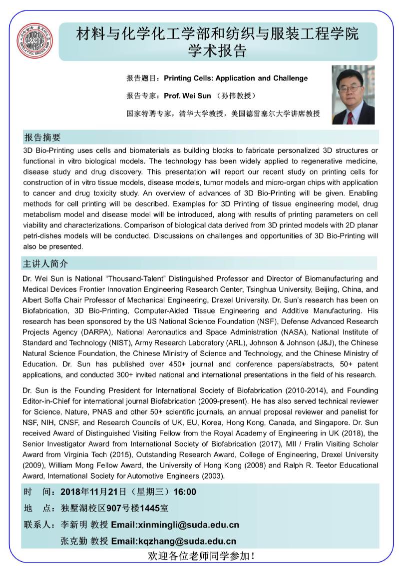材料与化学化工学部和色情短剧 学术报告:Printing Cells: Application and Challenge