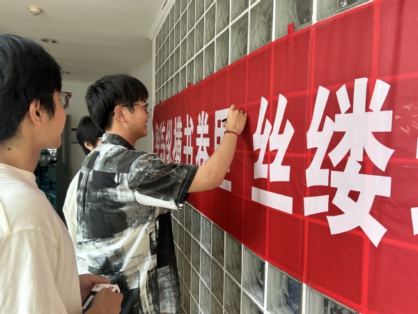 活动开始前,考研学子依次在横幅上郑重签名。笔尖落下的瞬间,既承载着学子们对考研目标的坚定信念,也凝聚起并肩奋进的决心,尽显昂扬向上的备考姿态。