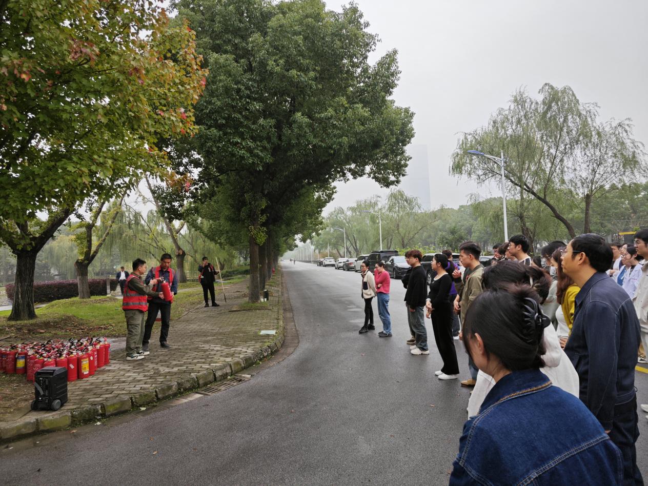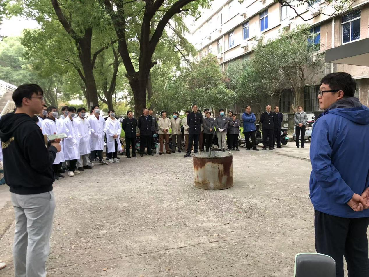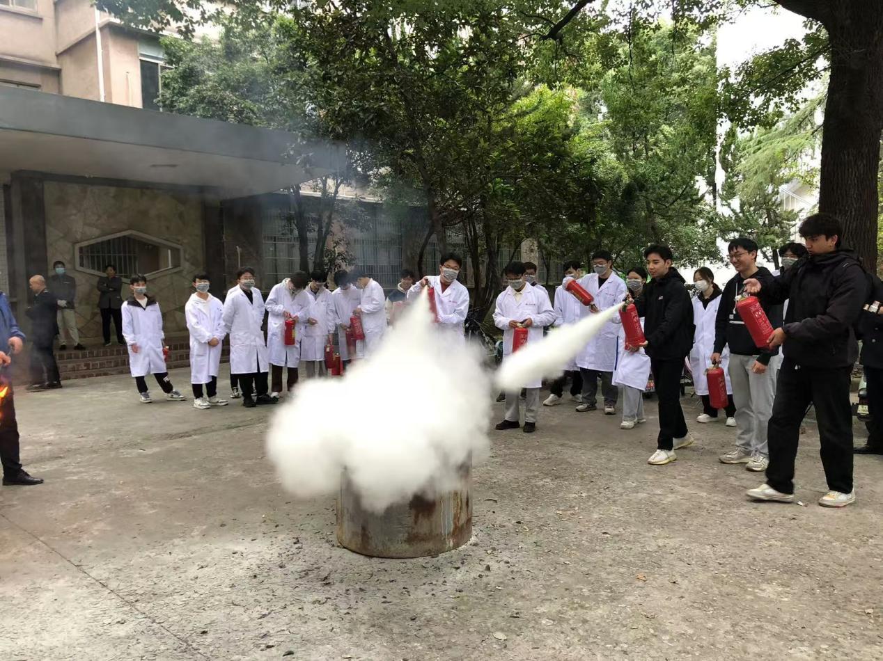 演练开始后,工作人员在楼宇外燃放烟雾罐。之后,楼道内响起报警铃声,疏散演练总指挥下达了全体人员紧急疏散的指令。紧接着,师生们在工作人员的引导下由安全出口迅速、有效的疏散,并有序撤离到安全地点。由各课题组安全员清点该课题组人数,汇总后上报负责老师。随后,消防科老师对本次演练做了演习总结。演练结束后由消防科老师对灭火器使用方法进行了详细讲解,并组织师生进行灭火器使用操作演练。