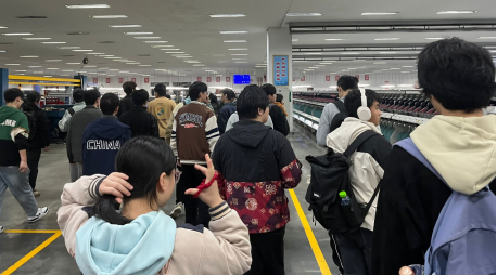随后,在阳光集团工作人员的带领下,苏大师生参观了纺纱车间、智能织造车间和服装车间。通过认真地听讲和细致地观察,同学们对纺织产品的整个生产流程有了更加直观的认识。从原材料的选取到产品的最终成型,每一个环节也都体现了阳光集团对品质的严格把控。