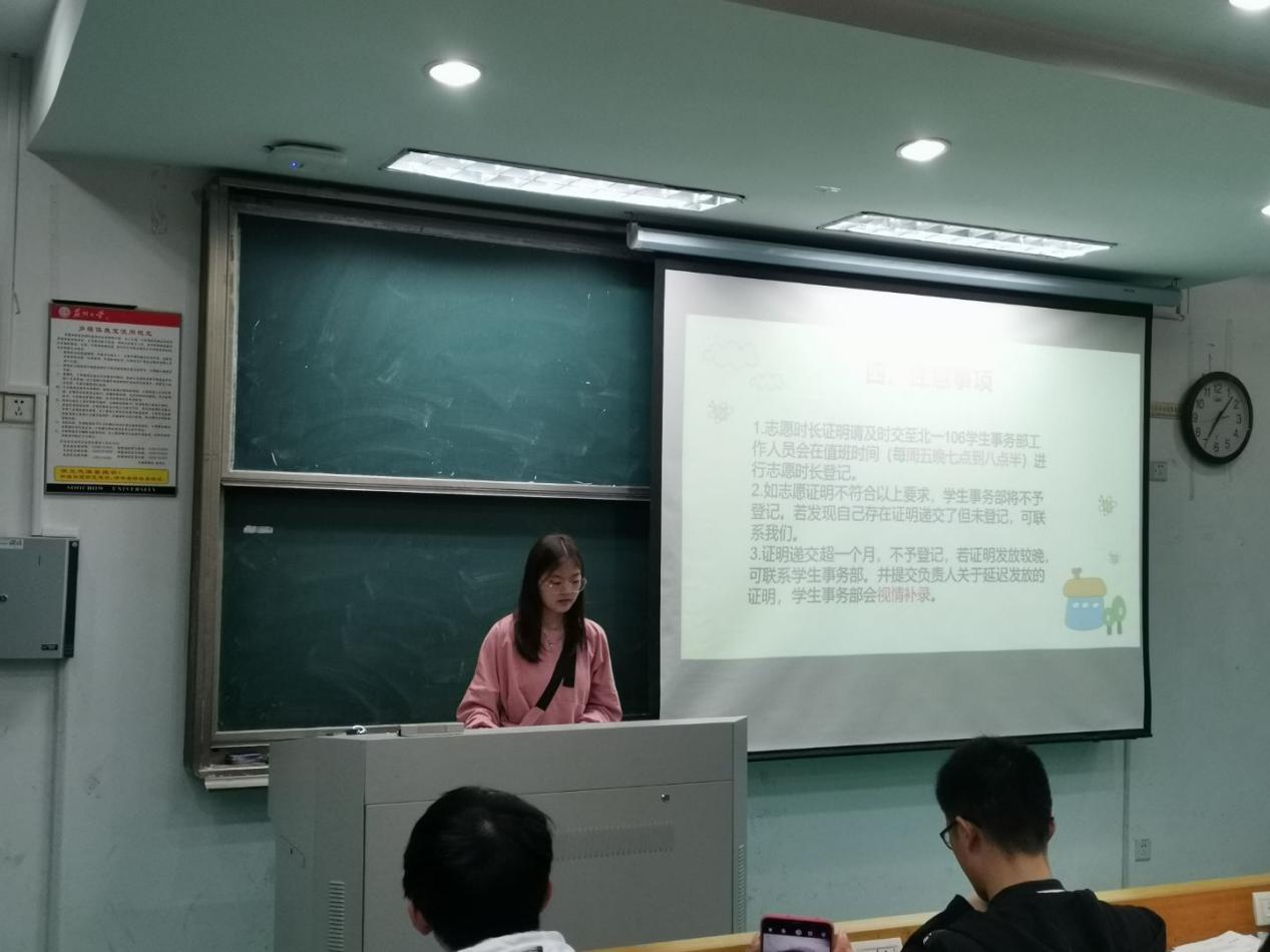 讲座伊始,事务中心乐嘉灵同学向大家介绍了“志愿者与志愿精神”,他表示当代青年大学生应该积极传承并发扬“奉献、友爱、互助、进步”的志愿者精神,为身边、为社会的美好建设贡献出自己的力量。随后志愿服务部、学生事务部、勤工助学部的负责人分别针对“事务中心志愿活动”、“参加志愿活动注意事项”、“志愿时长认定要求”、“志愿时长与评奖评优”等四部分内容进行详细介绍,他们鼓励同学们积极参与书院各项志愿活动,并及时、高效地完成志愿服务工作认定。在讲解过程中,穿插了有奖问答和幸运抽奖的互动环节,同学们积极地参与到讲座中来,现场气氛活跃,宣传效果良好。