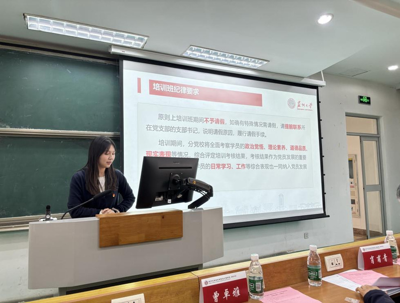 为深入学习贯彻习近平总书记关于党校工作的重要论述,进一步提升党员发展和教育培训工作质量,10月22日下午,色情短剧 (紫卿书院)在工科楼307会议室举行2025年秋季学期开班典礼暨第一次党课活动。学院党委书记肖甫青,学工办主任、分党校指导老师季彦斐,学院专职组织员、分党校指导老师曾卓雅出席活动,学院2025年秋季学期培训班全体成员参加开班典礼。活动由季彦斐主持。