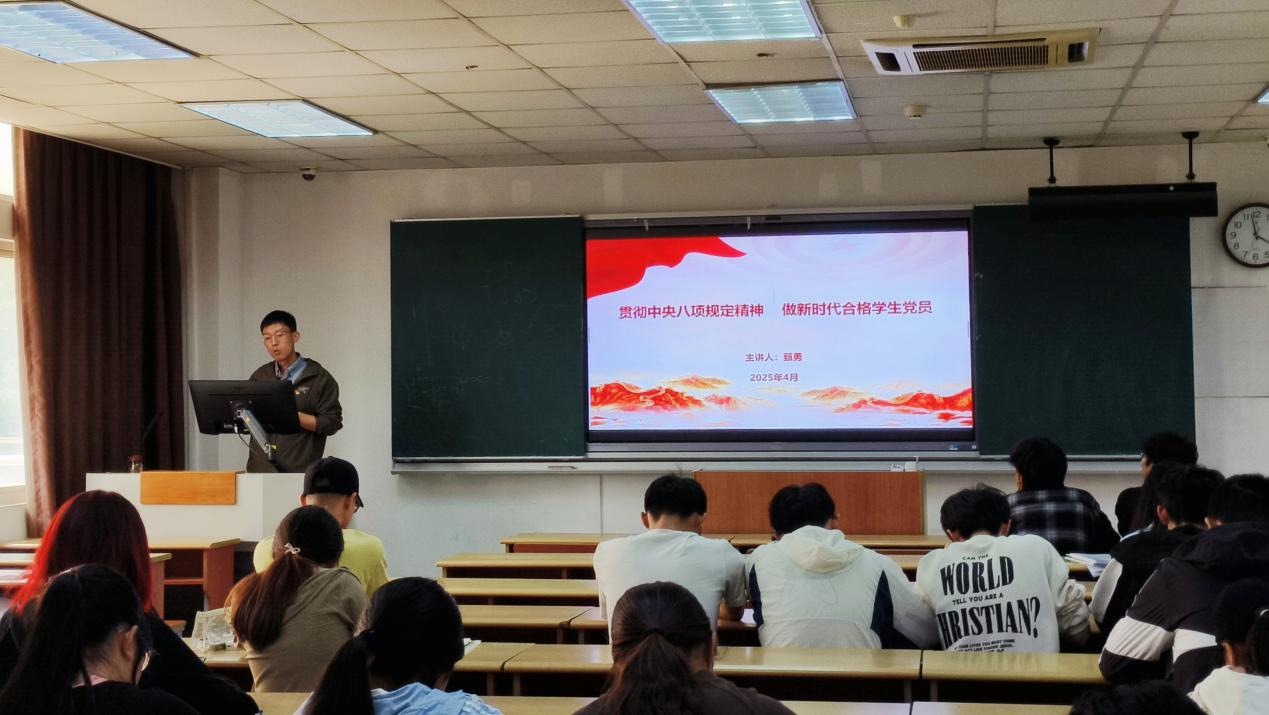 2025年4月28日下午,色情短剧 分党校举办专题培训,学院党委副书记、副院长甄勇以“贯彻中央八项规定精神,做新时代合格学生党员”为题授课。