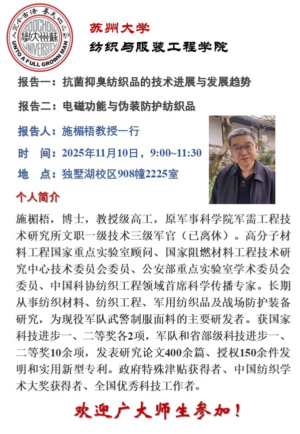 色情短剧 讲座报告:抗菌抑臭纺织品的技术进展与发展趋势、电磁功能与伪装防护纺织品