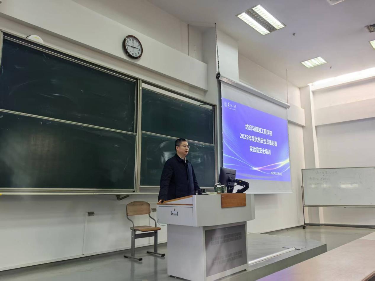 为进一步筑牢实验室安全防线,强化师生安全责任意识,充分发挥安全员在实验室安全管理中的关键作用,12月18日学院开展2025年度优秀安全员表彰暨实验室安全培训工作。学院党委书记肖甫青、学院专职安全员银华、学院辅导员李雪、研究生安全员和即将进入实验室的研一学生和本科生参加培训,培训由现代丝绸国家工程实验室副主任刘欣亮主持。