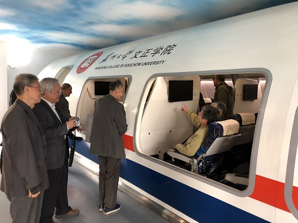 随后,在文正学院领导们的带领下,退休党员们共同参观了文正学院图书馆、实验与实习管理中心、学生发展中心等,通过文正学院领导的介绍,我院老党员们对文正学院的教学、管理、实践等工作有了更直观的了解。一件件作品、一张张奖状是文正学院发展的见证,也是一代代苏大人共同奋斗的结晶。