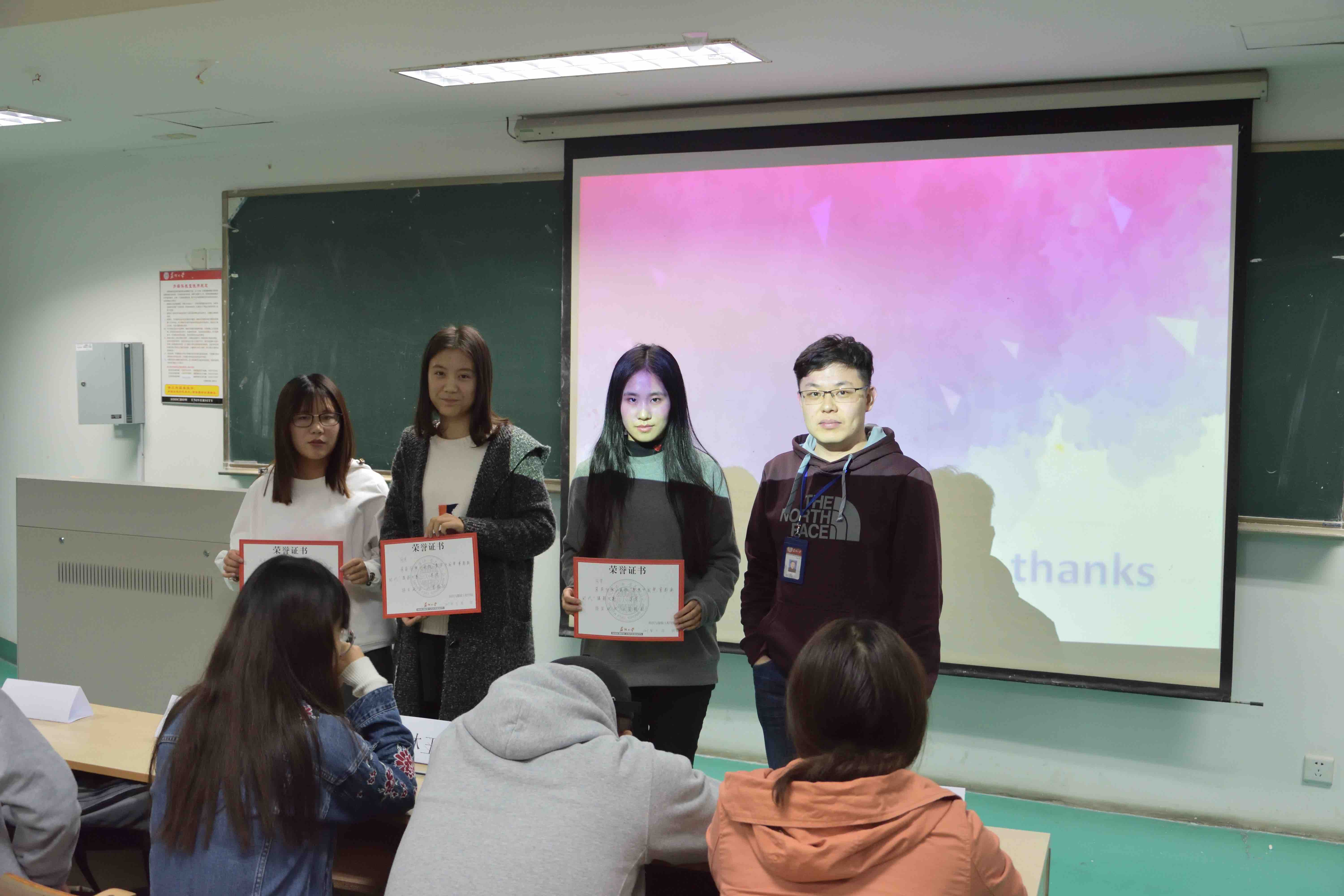 决赛现场,第一环节是由决赛选手讲解自己的作品。这些看似生活中随手可见的景物,通过参赛选手的讲解,带领我们进入了一个蓬勃发展、走向世界的中国,让我们感受到了中国共产党在建立小康社会的道路上的坚持与努力,看见了繁荣昌盛的中国社会,增强了我们的民族自信,每位选手的讲解都赢得了现场观众与评委热烈掌声以及发自内心的喝彩。第二环节是由王缘老师点评选手的作品。王缘老师在色调搭配、主题意义、抓拍角度等方面分别指出了每副作品的优缺点,并指出拍摄需要注意的事项,让在场的观众及选手们对摄影有了一个新的认识。最后此次摄影比赛进入评奖评优环节。通过各位评委老师的集体打分,我们选出了最后的七位获奖选手――一等奖赵昂;二等奖吴天宇、黄琳铃;三等奖纪博文、荆梦瑶、祁珍珍;最佳人气奖:周玉莹。由评委亲自颁奖并合影留念。