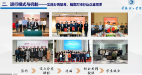 本次报告中,张技术教授首先向大家介绍了产业学院的缘起和现状,以及现代产业学院建设的核心要素,提出产业学院的实质是学校、行业全过程协作,培养符合业界需要的应用型人才。然后,张教授从建设背景、运行模式与机制、建设成效等方面详细介绍了产业学院的建设情况。张教授指出,产业学院通过制度创新、成立企业联盟、校企八共同、分类培养、学生双向选择、教师双向交流等方式,建立了长效运行机制,精准对接行业企业需求,调动了行业育人的积极性,使企业全程、全方位参与人才培养。最后,张教授从产业学院的建设内容、地域空间、培养就业以及校企互动等方面提出了未来构想。