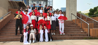 赛场上,同学们动作整齐,精神十足。纺院的同学们伴着节奏舞动,展现出超凡的实力。大家都穿着汉服,领舞的三位女同学舞动着水袖,柔美又不失活泼生动,赢得了大家热烈的掌声。