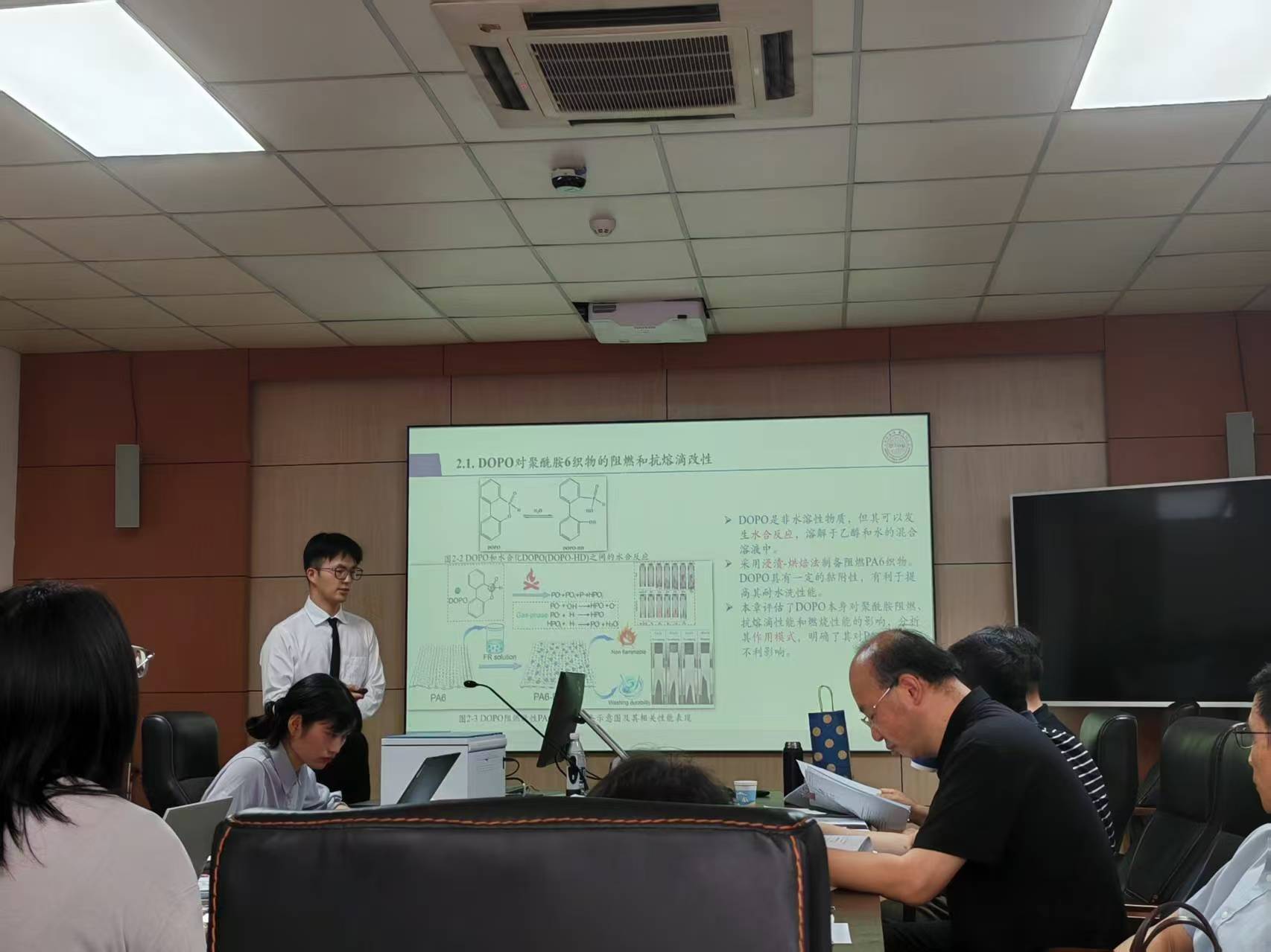 金文杰的博士论文题目为《DOPO衍生物的制备及对聚酰胺6织物的耐久阻燃抗熔滴改性》,指导教师为关晋平教授。论文针对聚酰胺6纤维阻燃性能差、熔滴严重、耐久性差的问题,采用9,10-二氢-9-氧杂-10-磷杂菲-10-氧化物(DOPO)合成系列具有反应性、成膜性或粘附性的磷杂菲衍生物,提高了阻燃剂和聚酰胺6纤维之间的作用力,从而提高阻燃聚酰胺6织物的耐水洗性能。系统研究了DOPO衍生物的结构、性能和机理之间的联系。论文深入探讨了系列DOPO衍生物对PA6织物的阻燃和抗熔滴功能的作用机制。研究具有创新性,为制备可持续耐久阻燃抗熔滴聚酰胺6织物提供了理论和技术依据。