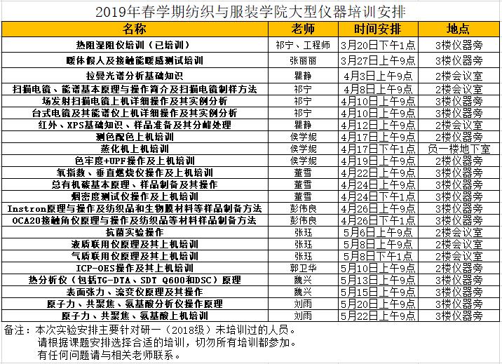 2019年春学期纺织与服装学院大型仪器培训安排