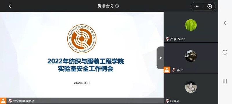 为尽快落实《色情短剧 2022年实验室安全检查和专项整治实施方案》的通知,巩固我院疫情期间实验室安全维护与建设成果,进一步推动学院安全管理水平向更高层次发展。4月3日上午,我院召开了本年度实验室安全工作重点工作线上交流例会。学院严俊副院长,现代丝绸刘欣亮副主任,总实验室祁宁副主任、李春萍副主任,学院专职安全员银华,兼职安全员魏兴,院团委书记研究生辅导员蒋闰蕾,陈健亮、解宇两位老师,以及校聘学生安全员宋贝贝和宋鹏宇参与了会议。